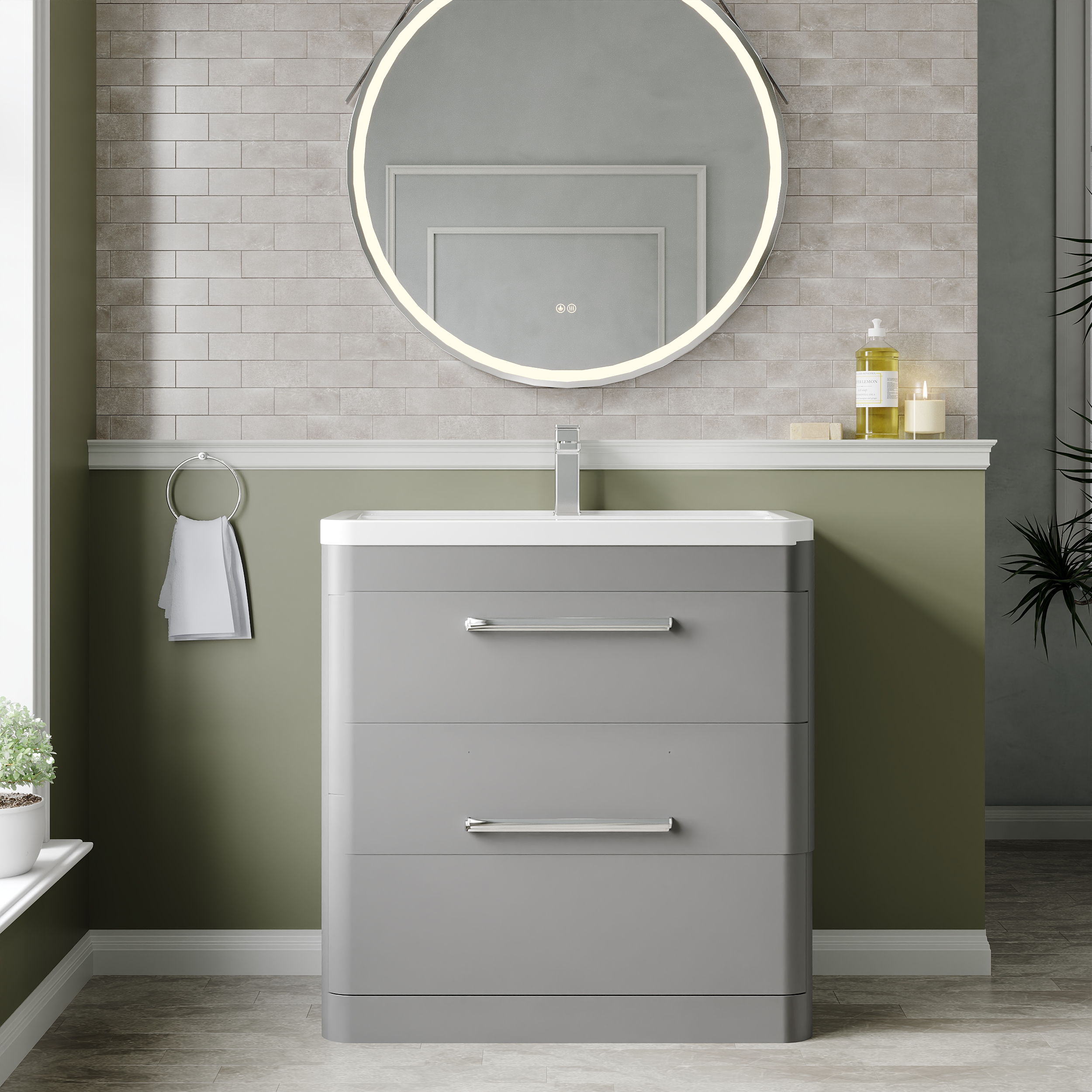 This floor-standing unit gives ample storage, perfect for a busy family bathroom