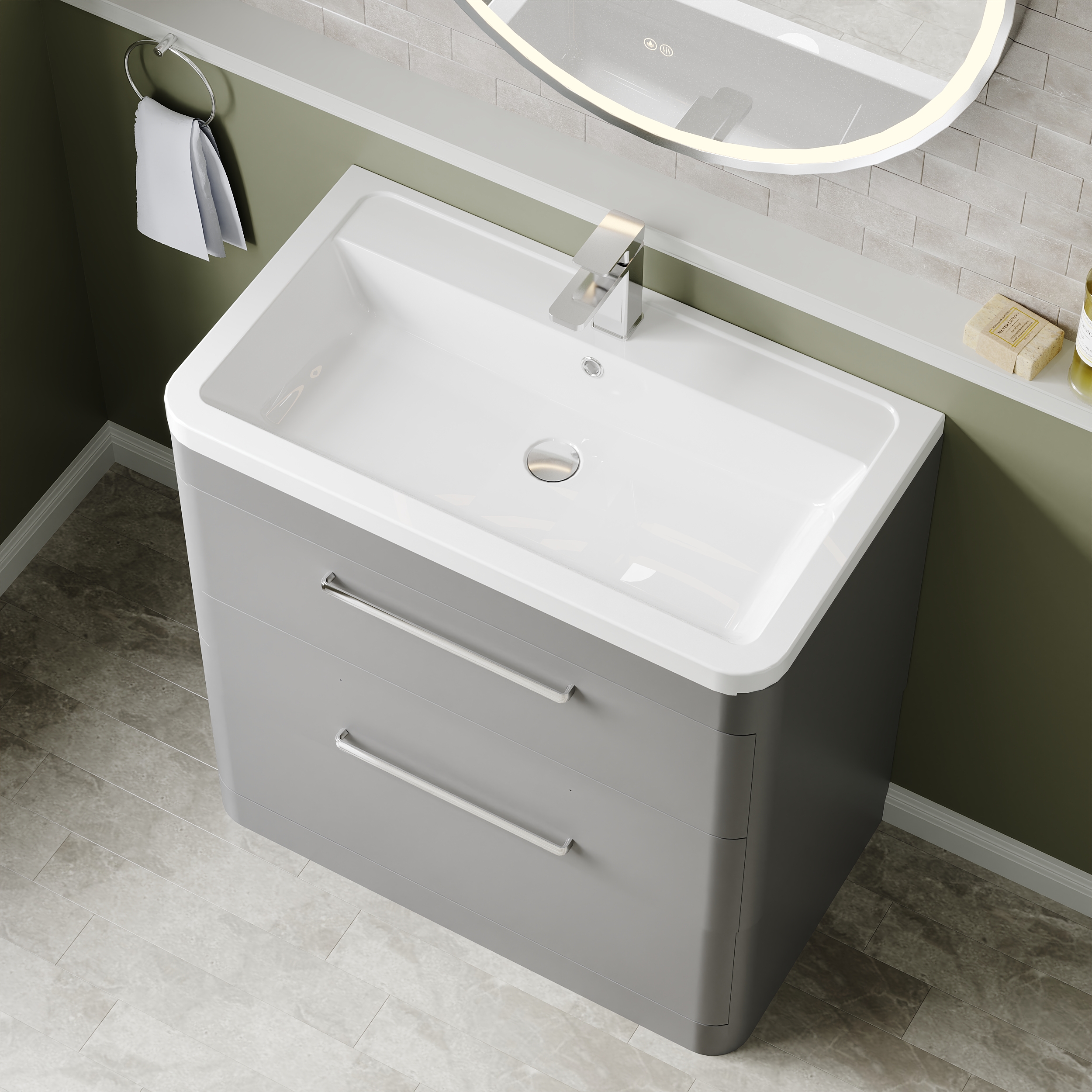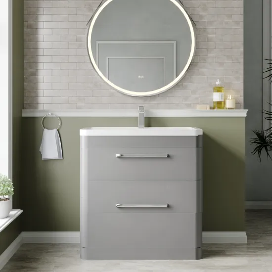 Hudson Reed Solar Floor Standing 2 Drawer Vanity Unit with Ceramic Basin 800mm - Cool Grey