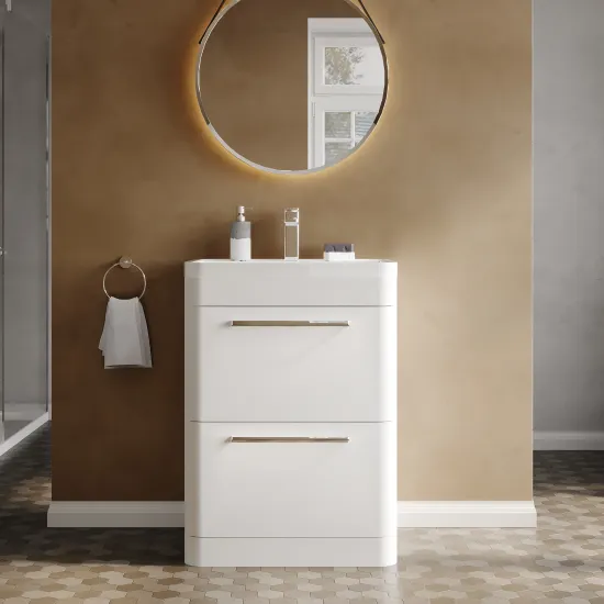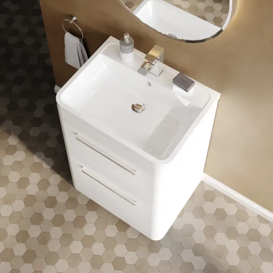 Hudson Reed Solar Floor Standing 2 Drawer Vanity Unit with Polymarble Basin 600mm - Pure White
