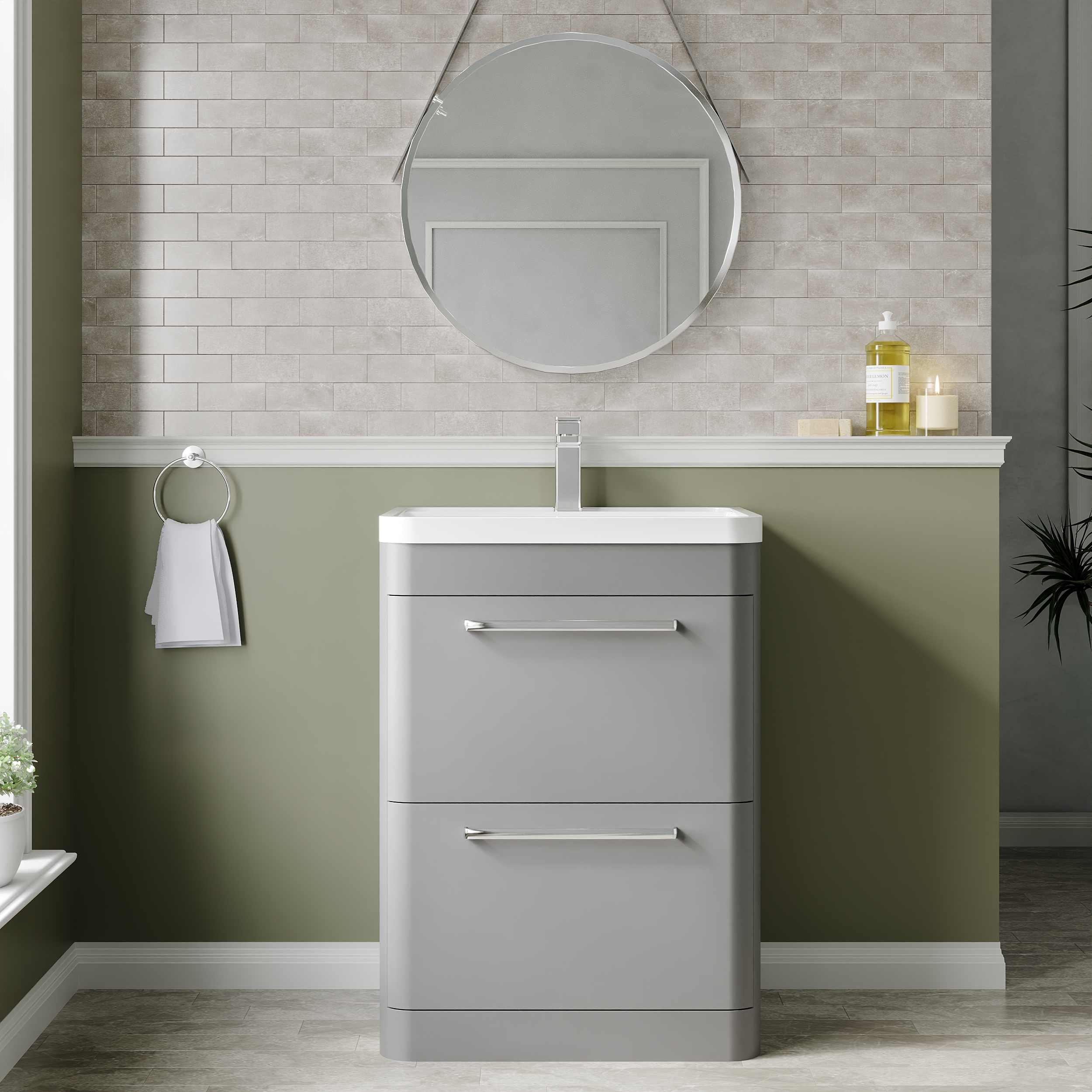 This floor-standing unit gives ample storage, perfect for a busy family bathroom