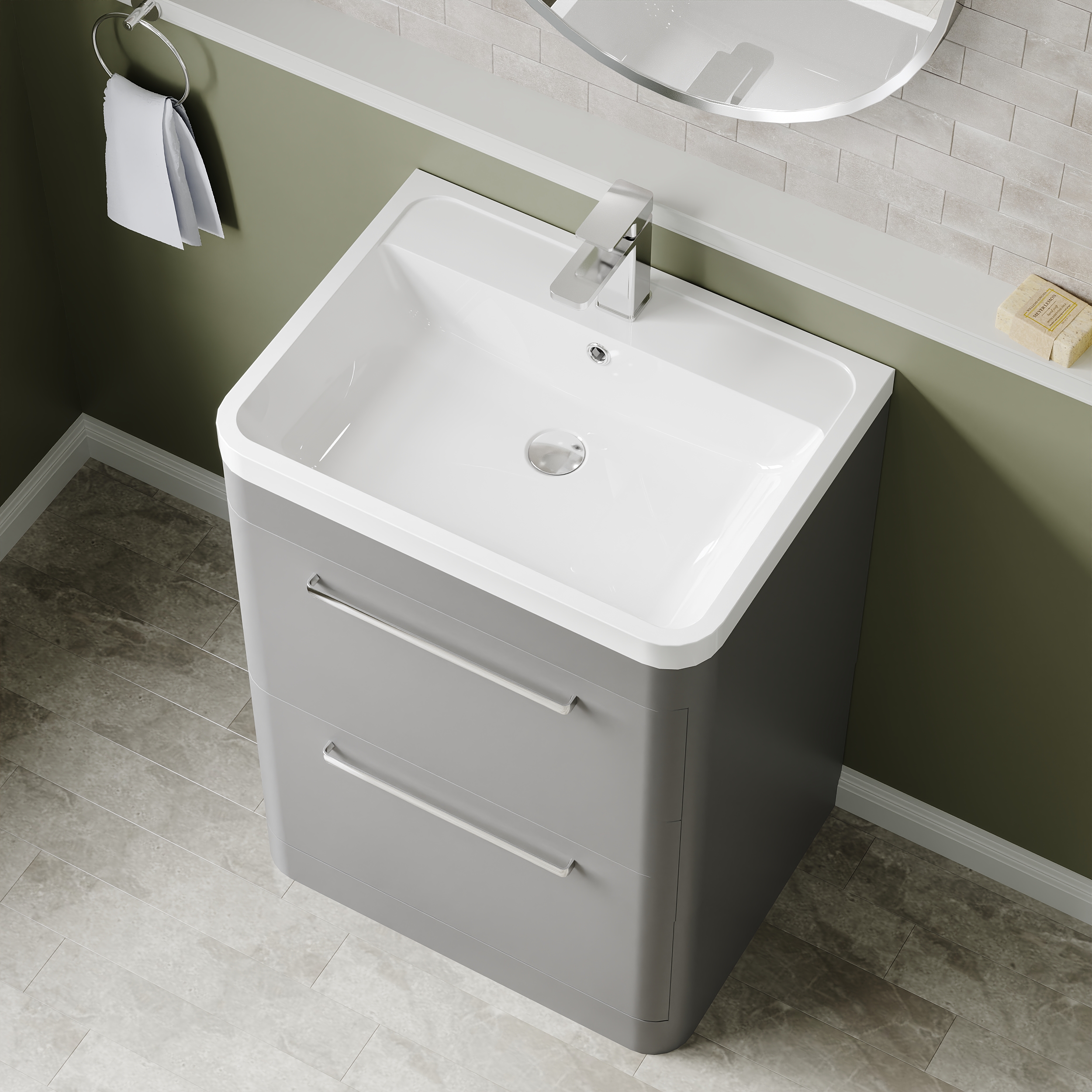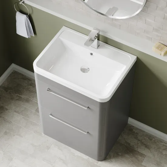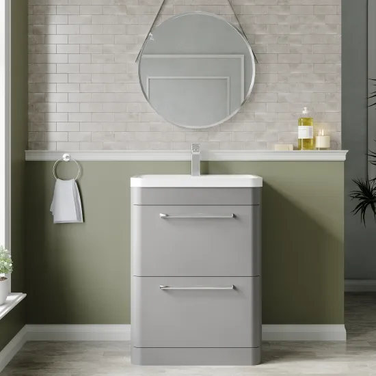 Hudson Reed Solar Floor Standing 2 Drawer Vanity Unit with Polymarble Basin 600mm - Cool Grey
