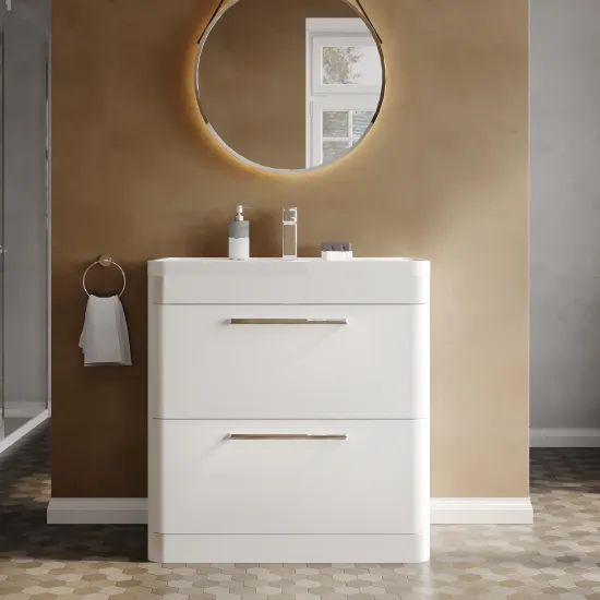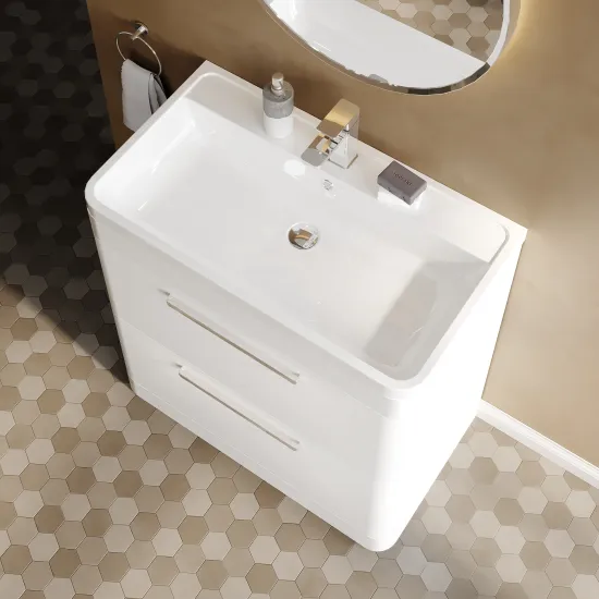 Hudson Reed Solar Floor Standing 2 Drawer Vanity Unit with Polymarble Basin 800mm - Pure White