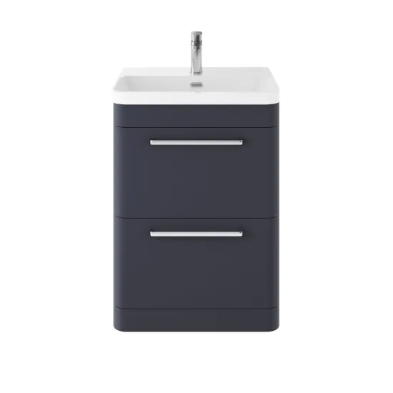 Hudson Reed Solar Floor Standing 2 Drawer Vanity Unit with Thin Edge Ceramic Basin 600mm - Indigo Blue