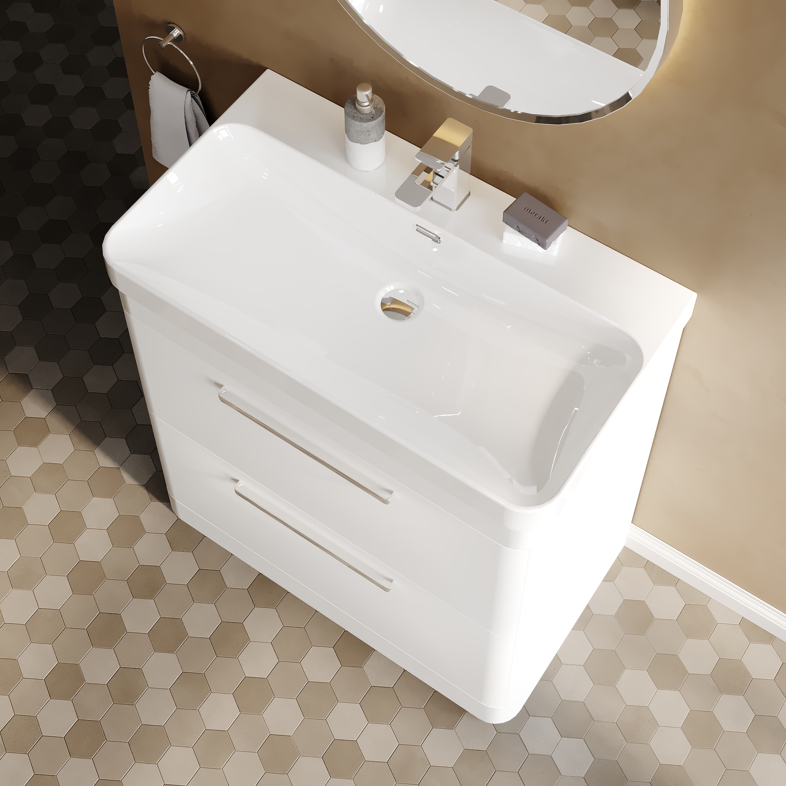 Hudson Reed Solar Floor Standing 2 Drawer Vanity Unit with Thin Edge Ceramic Basin 800mm - Pure White