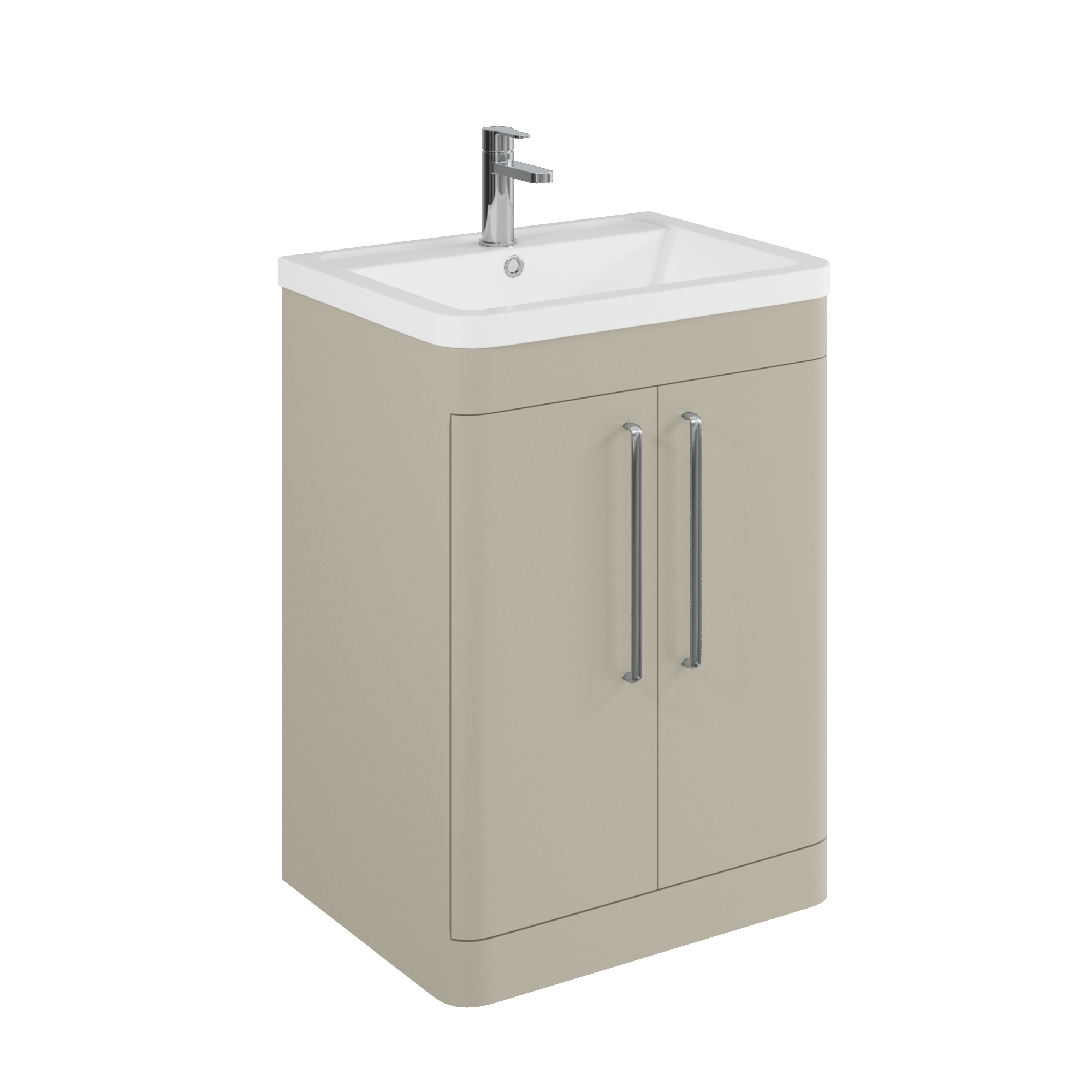 Synergy Gero 600mm 2 Door Floor Standing Vanity Unit - Pebble Grey