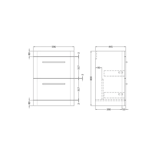 Synergy Gero 600mm 2 Drawer Floor Standing Vanity Unit - Gloss White