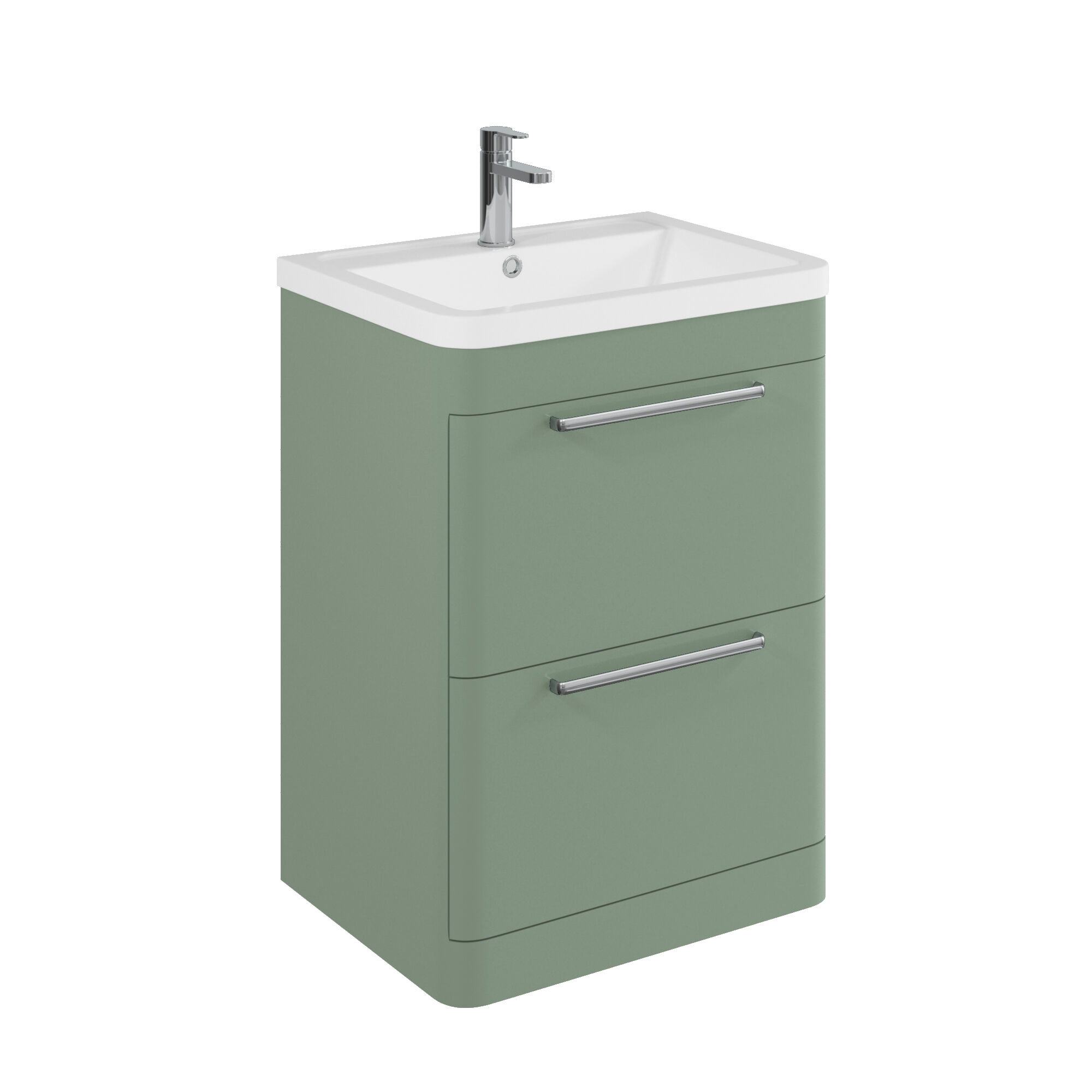 Synergy Gero 600mm Satin Green 2 Drawer Floor Standing Unit With Handles