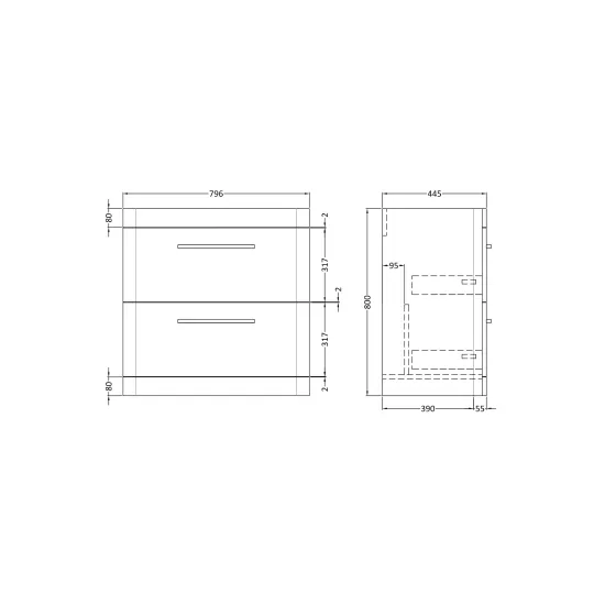 Synergy Gero 800mm 2 Drawer Floor Standing Vanity Unit - Gloss White