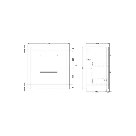 Synergy Gero 800mm Pebble Grey 2 Drawer Floor Standing Unit With Handles