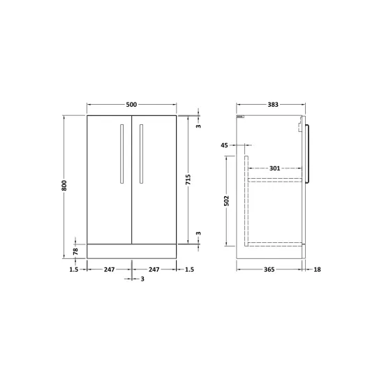 Synergy Omerg 500mm Pebble Grey 2 Door Floor Standing Unit With Handles