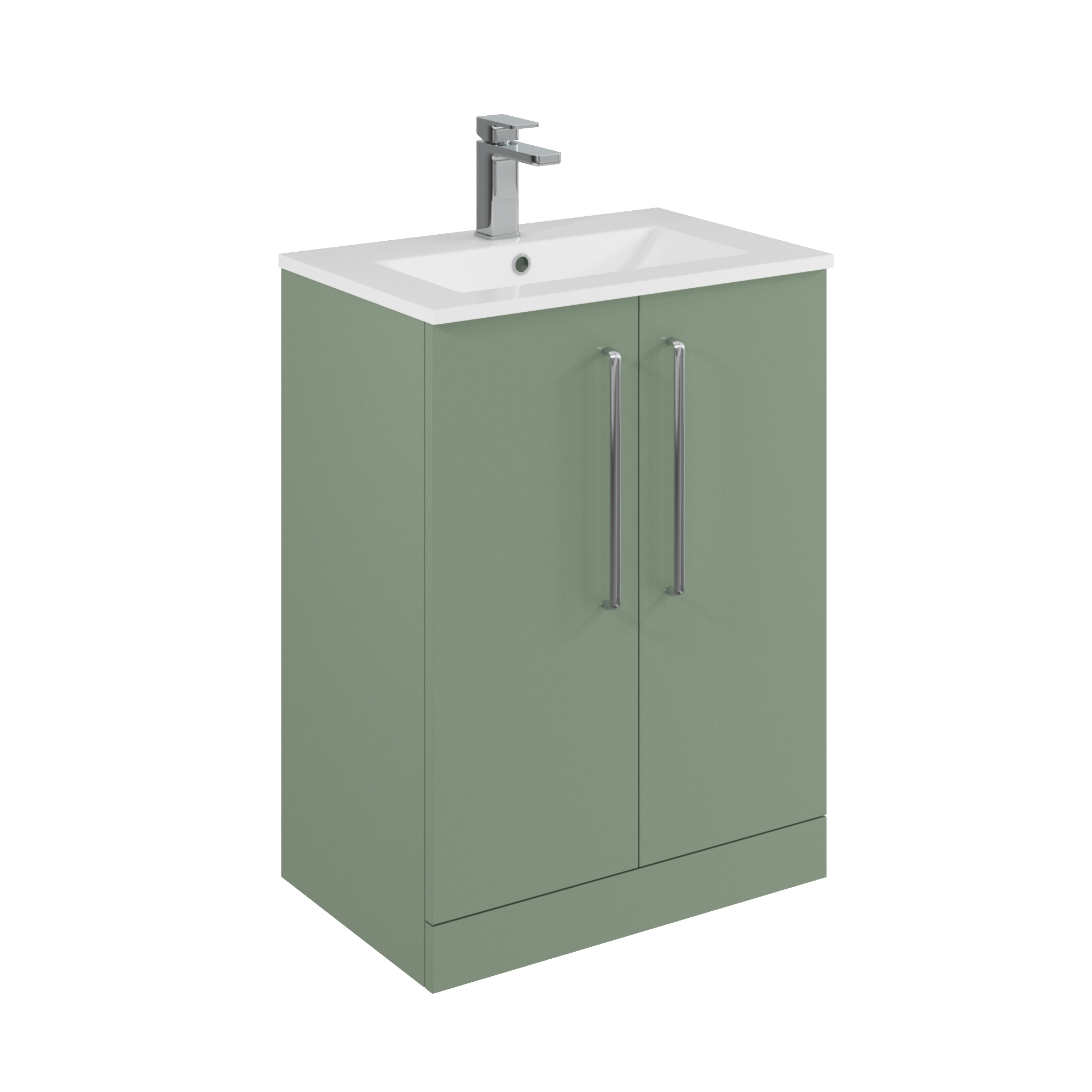 Synergy Omerg 600mm 2 Door Floor Standing Vanity Unit - Satin Green