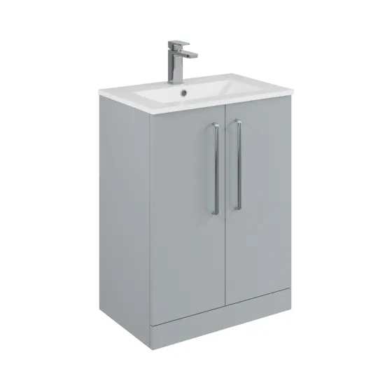 Synergy Omerg 600mm 2 Door Floor Standing Vanity Unit - Satin Grey