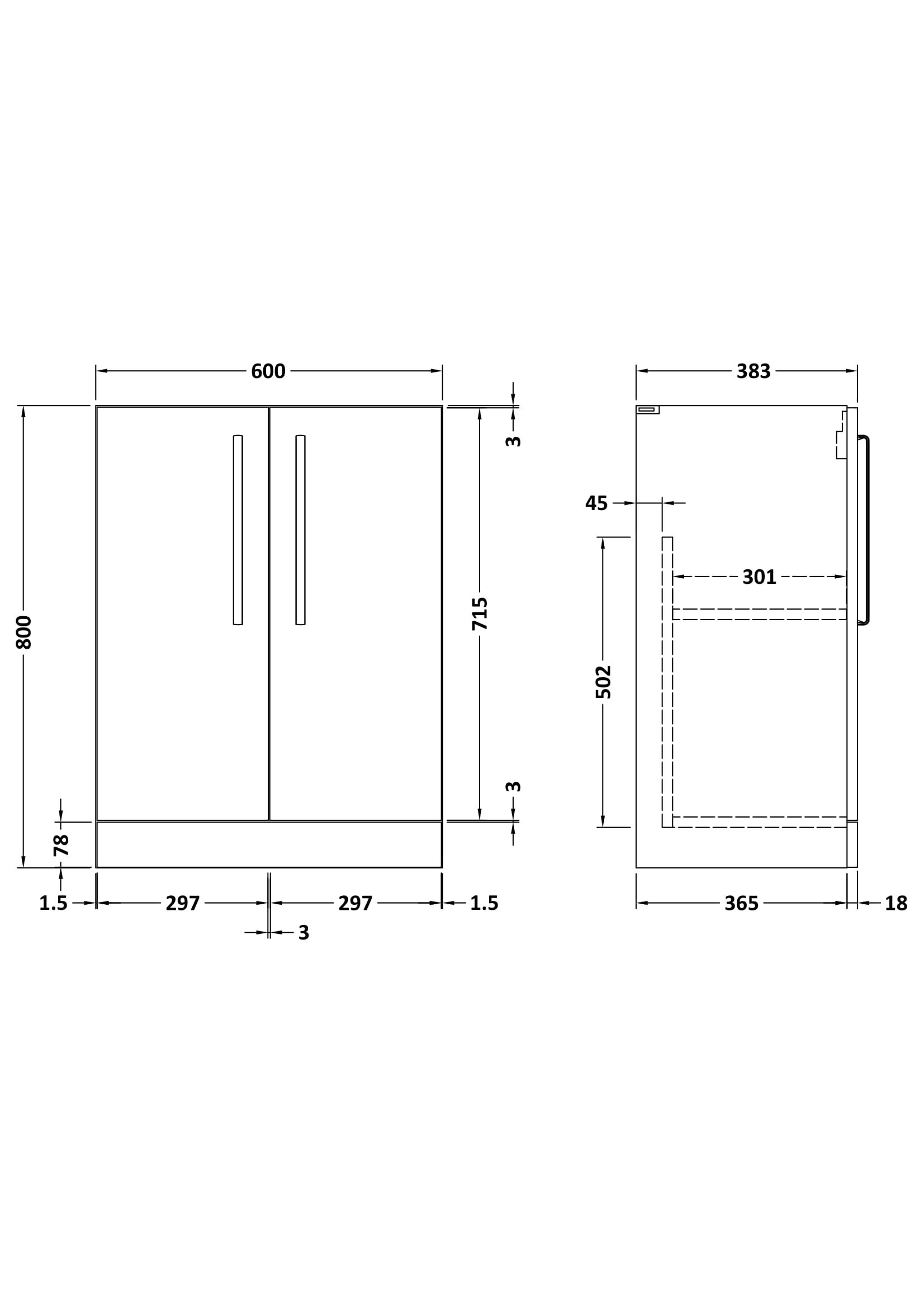 Synergy Omerg 600mm Soft Black 2 Door Floor Standing Unit With Handles
