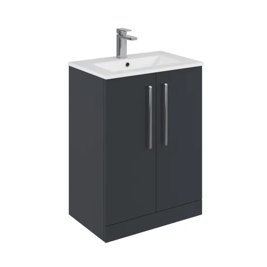 Synergy Omerg 600mm 2 Door Floor Standing Vanity Unit - Soft Black