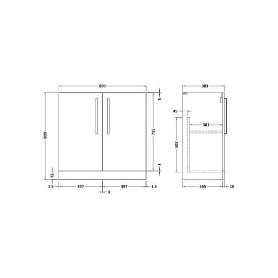 Synergy Omerg 800mm Gloss White 2 Door Floor Standing Unit With Handles