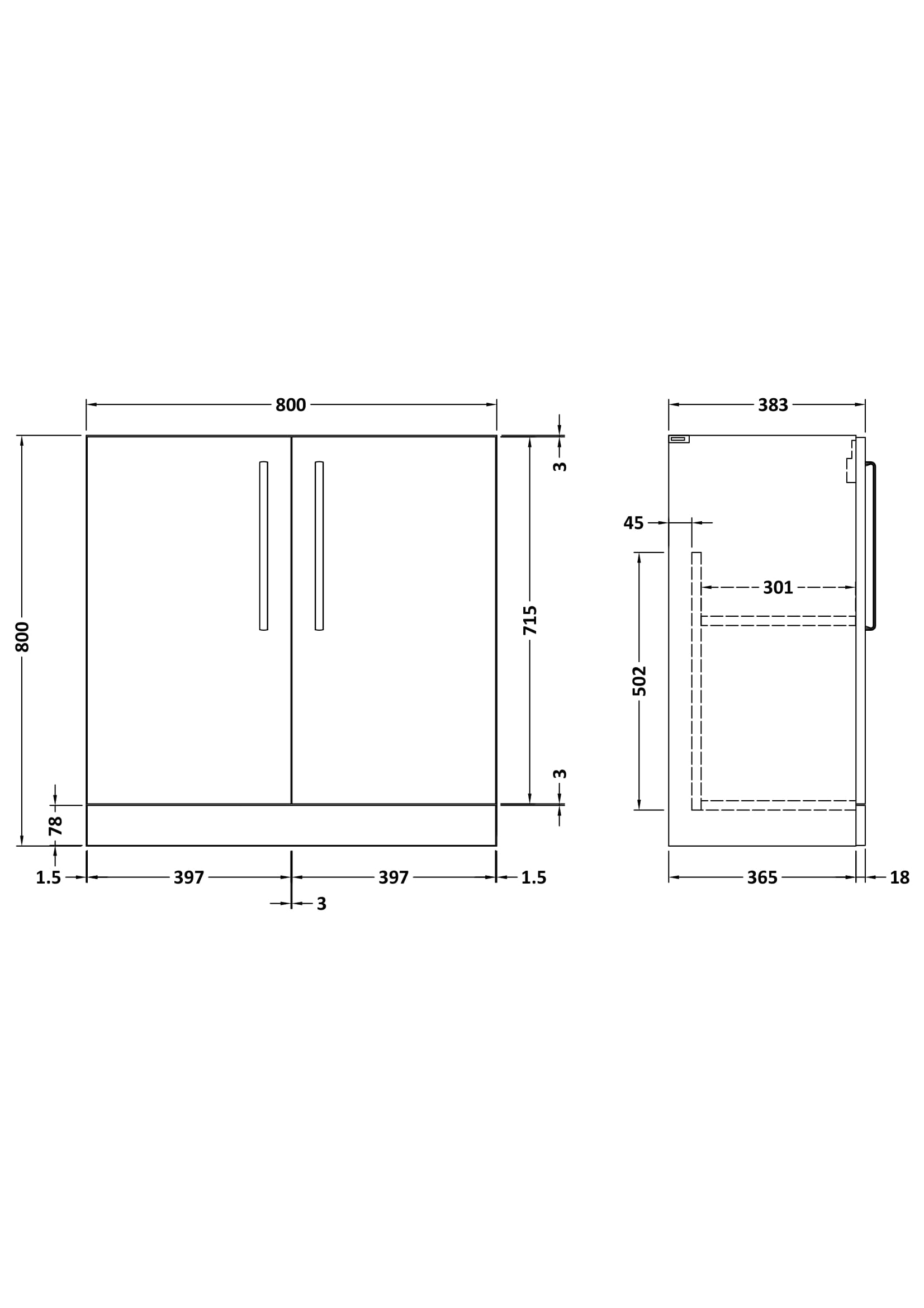 Synergy Omerg 800mm 2 Door Floor Standing Vanity Unit - Pebble Grey