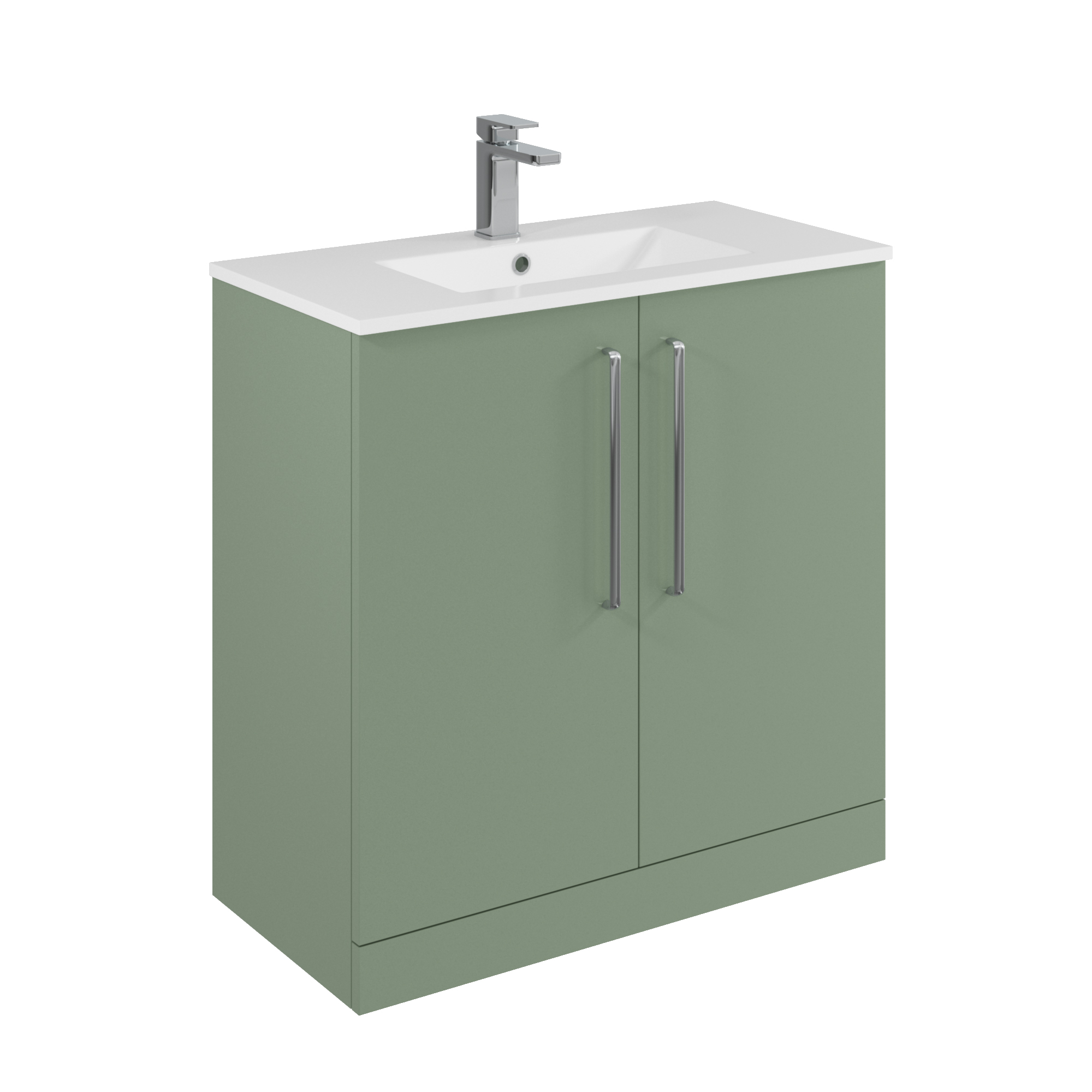 Synergy Omerg 800mm 2 Door Floor Standing Vanity Unit - Satin Green