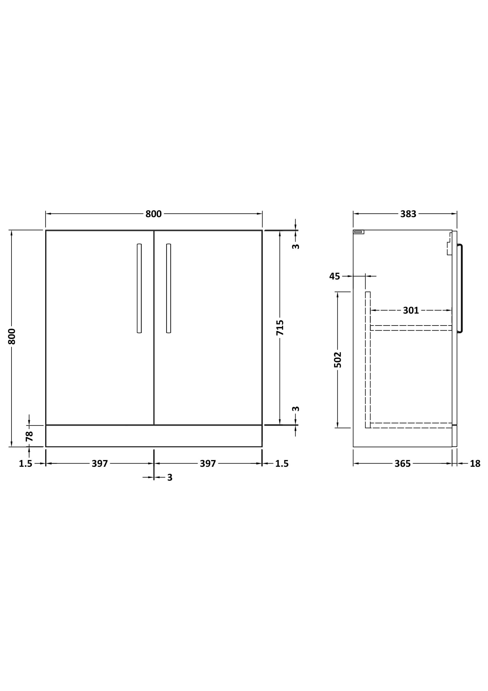 Synergy Omerg 800mm Soft Black 2 Door Floor Standing Unit With Handles