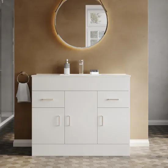 Nuie 1000mm Gloss White Floor Standing 3 Door 2 Drawer Vanity Unit with Basin