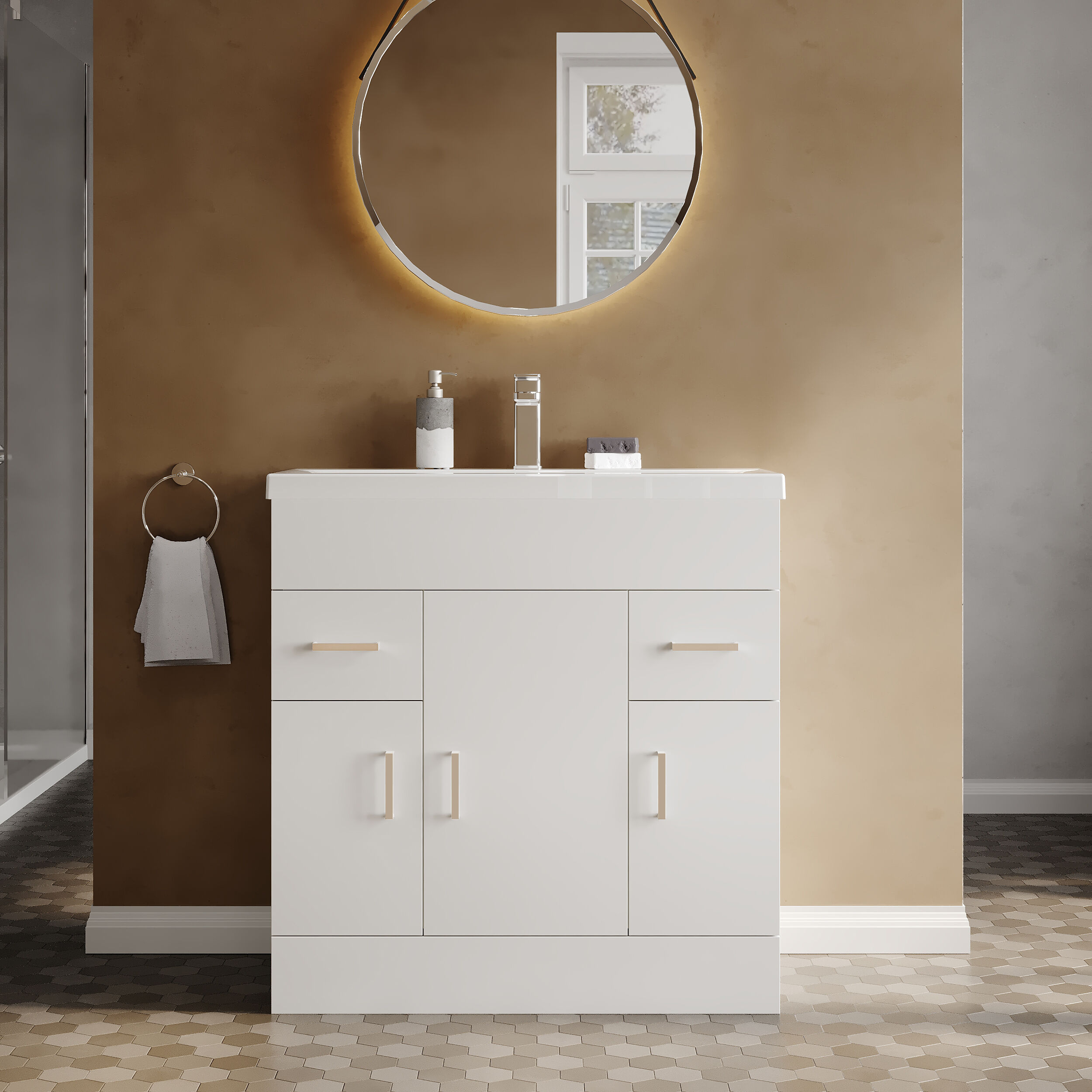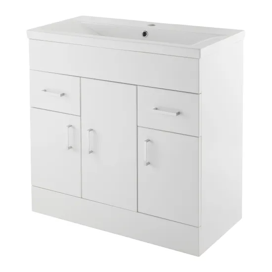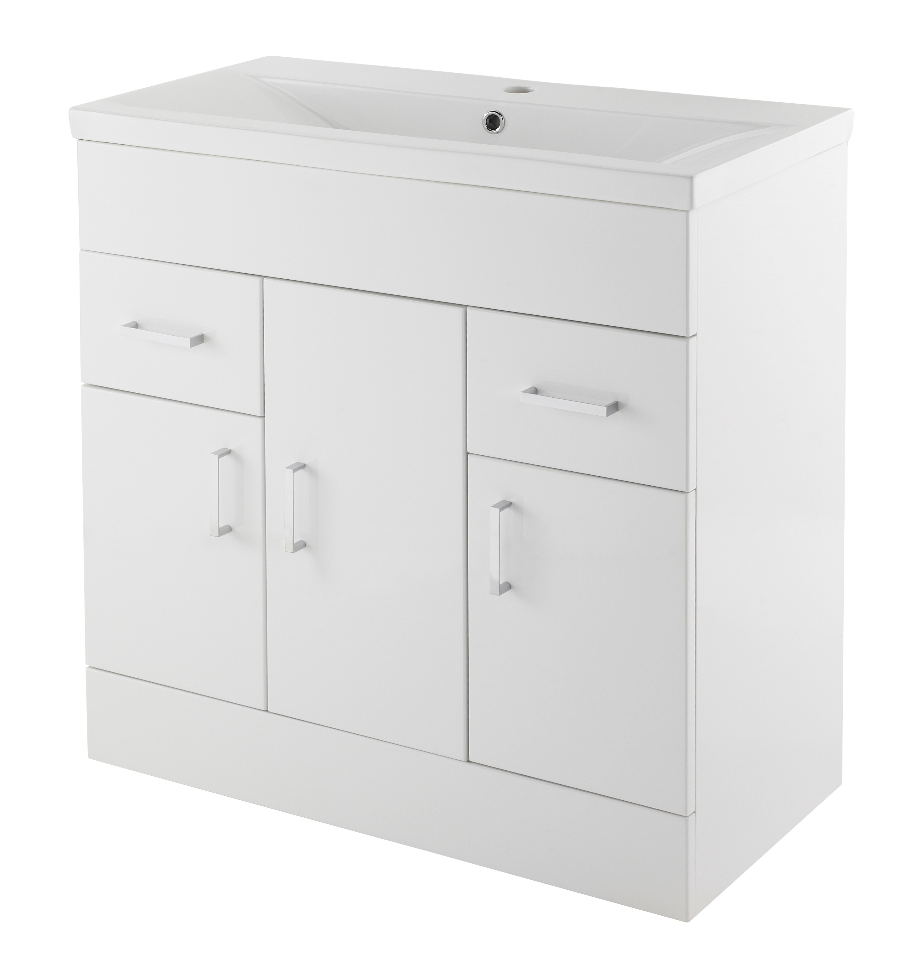 nuie choice Turin Floor Standing 3 Door 2 Drawer Vanity Unit with Mid-Edge Basin 800mm - Gloss White