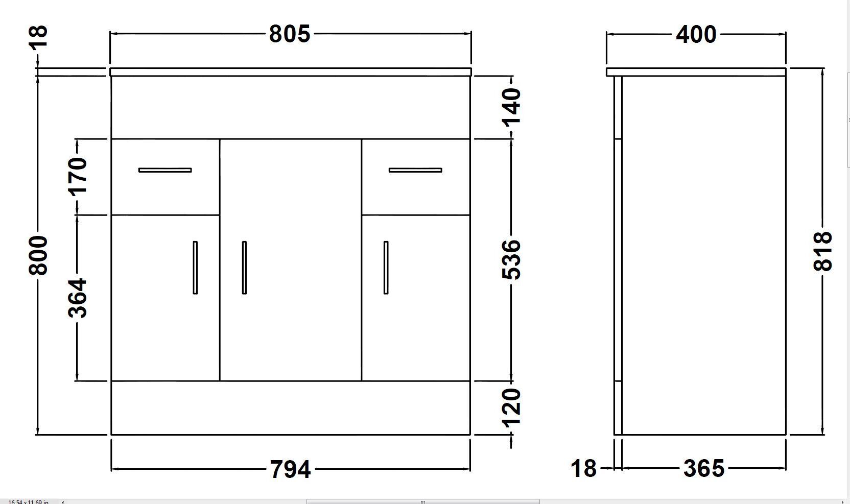 Nuie 800mm Floor Standing 3 Door 2 Drawer Vanity Unit with Basin with Soft Close Doors & Drawers