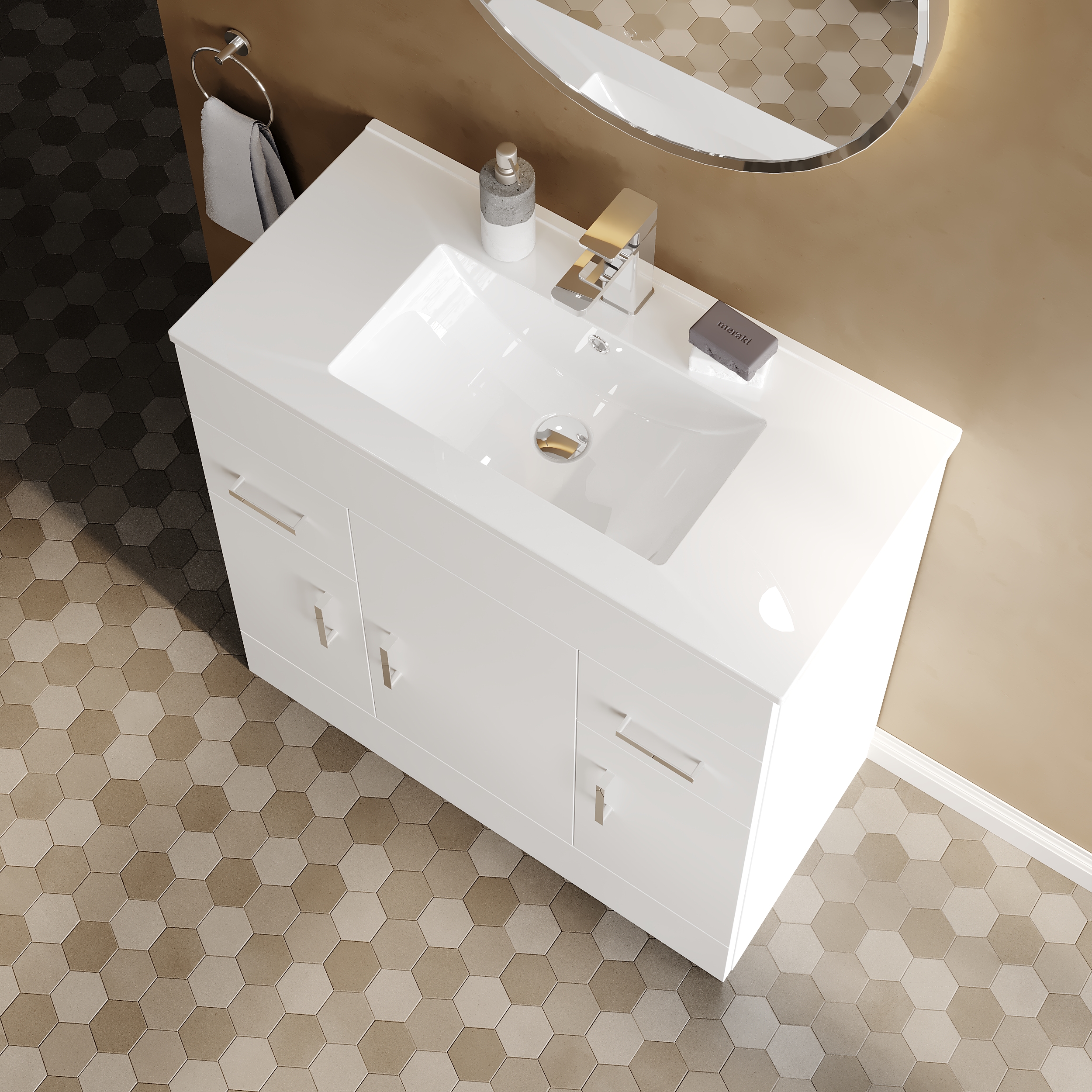 nuie choice Turin Floor Standing 3 Door 2 Drawer Vanity Unit with Minimalist Basin 800mm - Gloss White