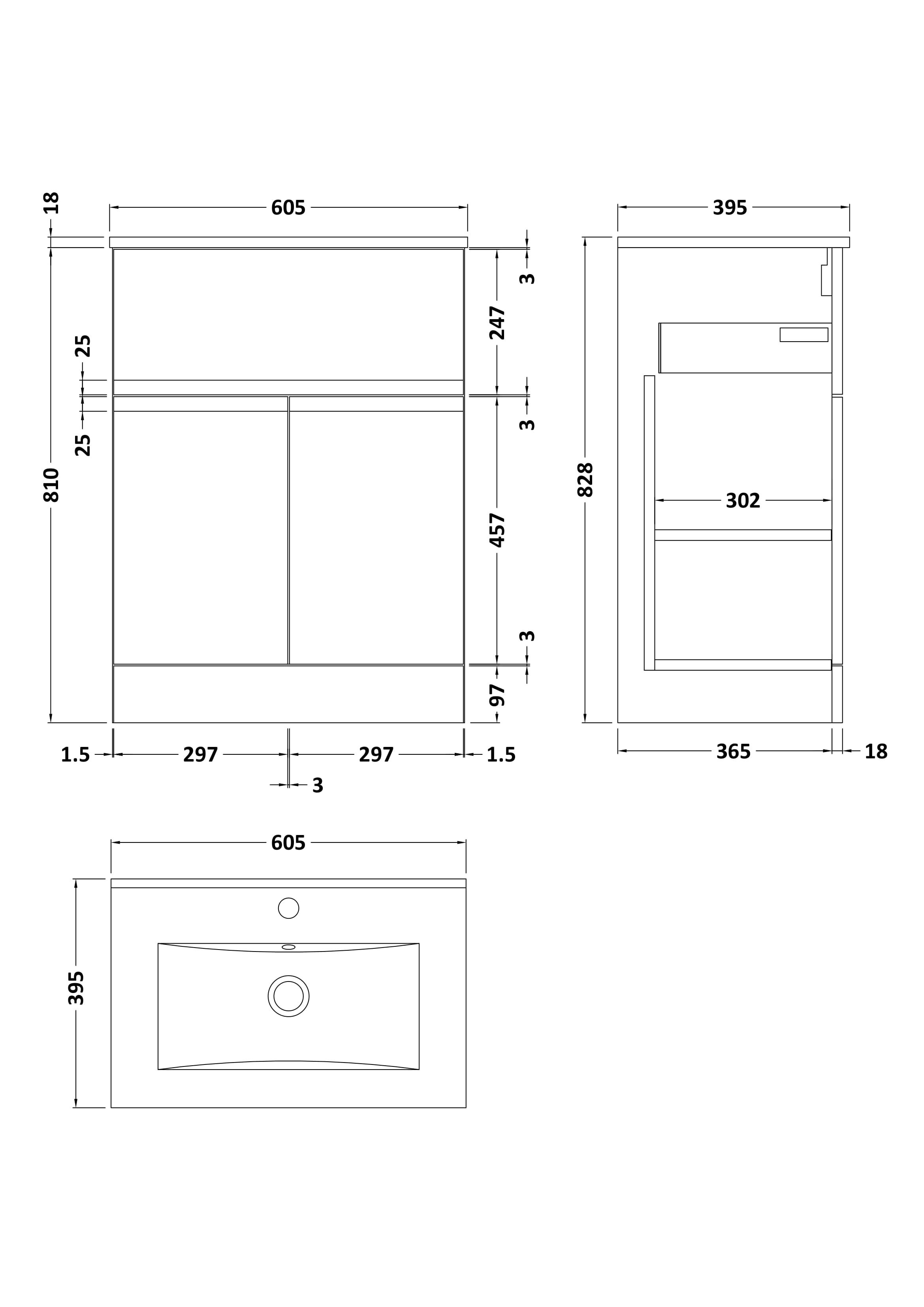 Urban 600mm Floor Standing 2-Door/Drawer Unit and Minimalist Basin 1 Tap Hole