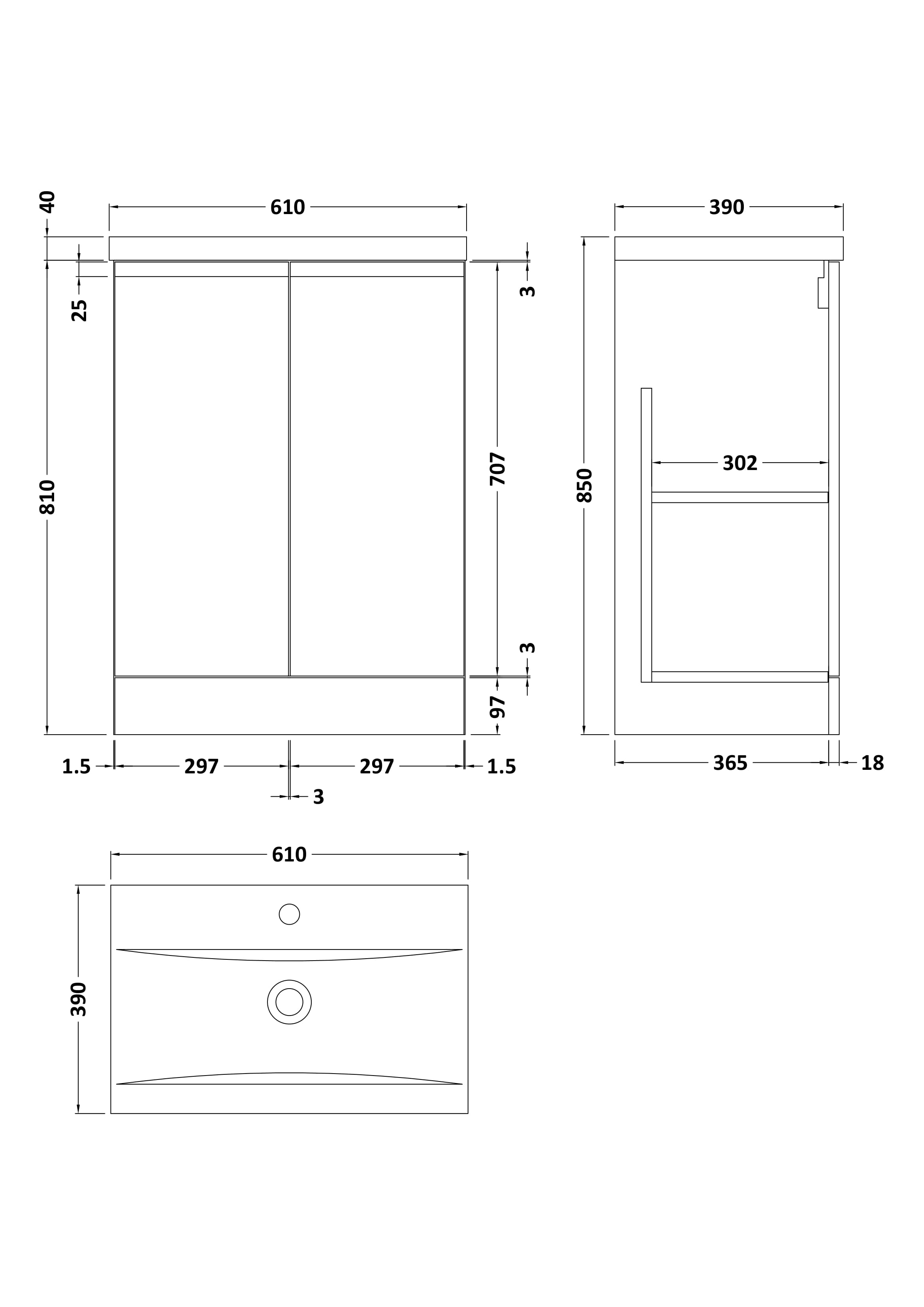Urban 600mm Floor Standing 2-Door Unit and Mid-Edge Basin 1 Tap Hole
