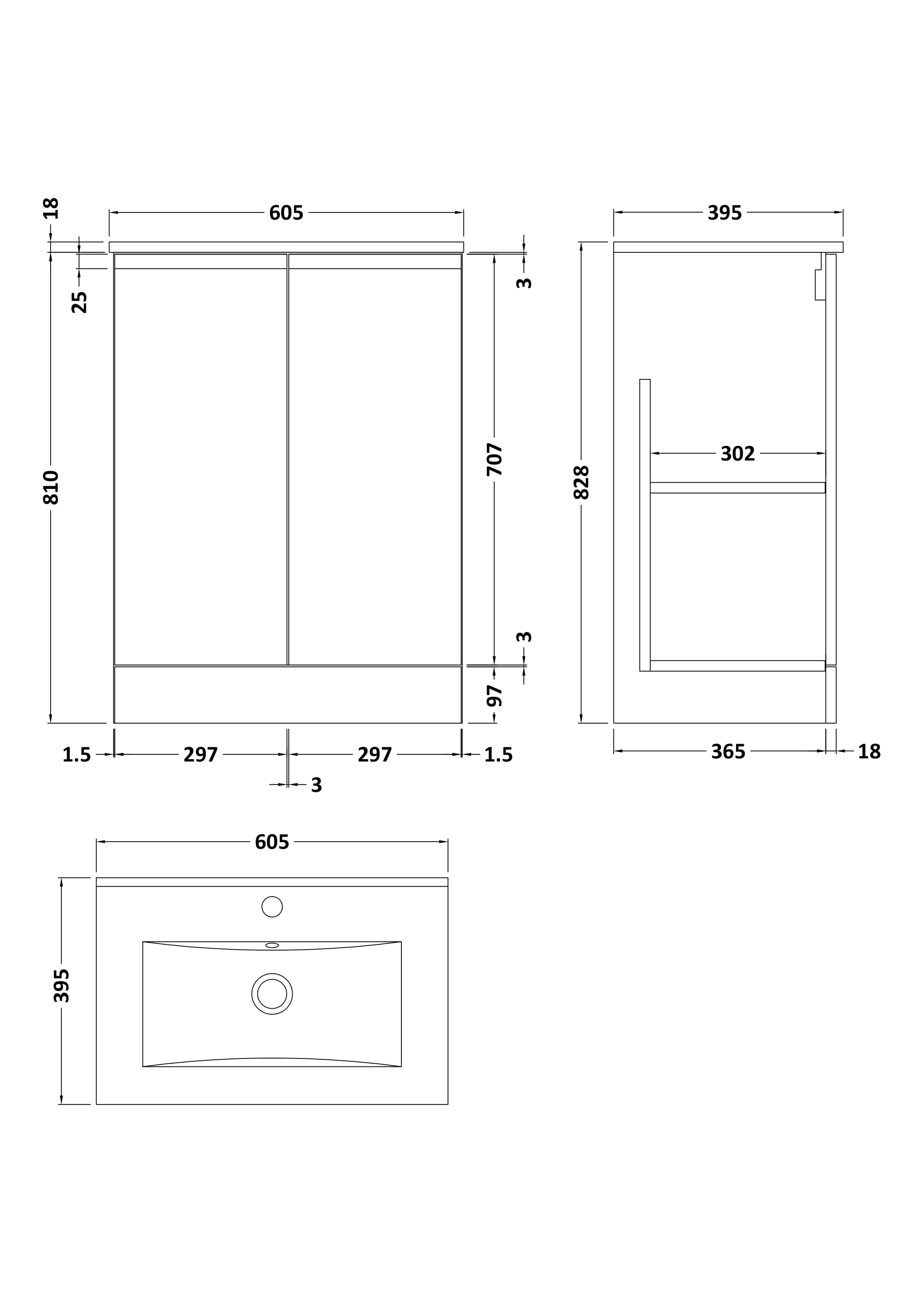 Urban 600mm Floor Standing 2-Door Unit and Minimalist Basin 1 Tap Hole