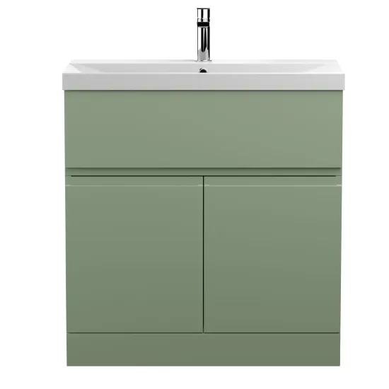 Hudson Reed Urban 800mm Floor Standing 2-Door/Drawer Unit and Thin-Edge Basin 1 Tap Hole - Satin Green