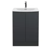 Hudson Reed Urban Floor Standing 2 Door 1 Drawer Vanity & Curved Ceramic Basin, 600mm - Soft Black