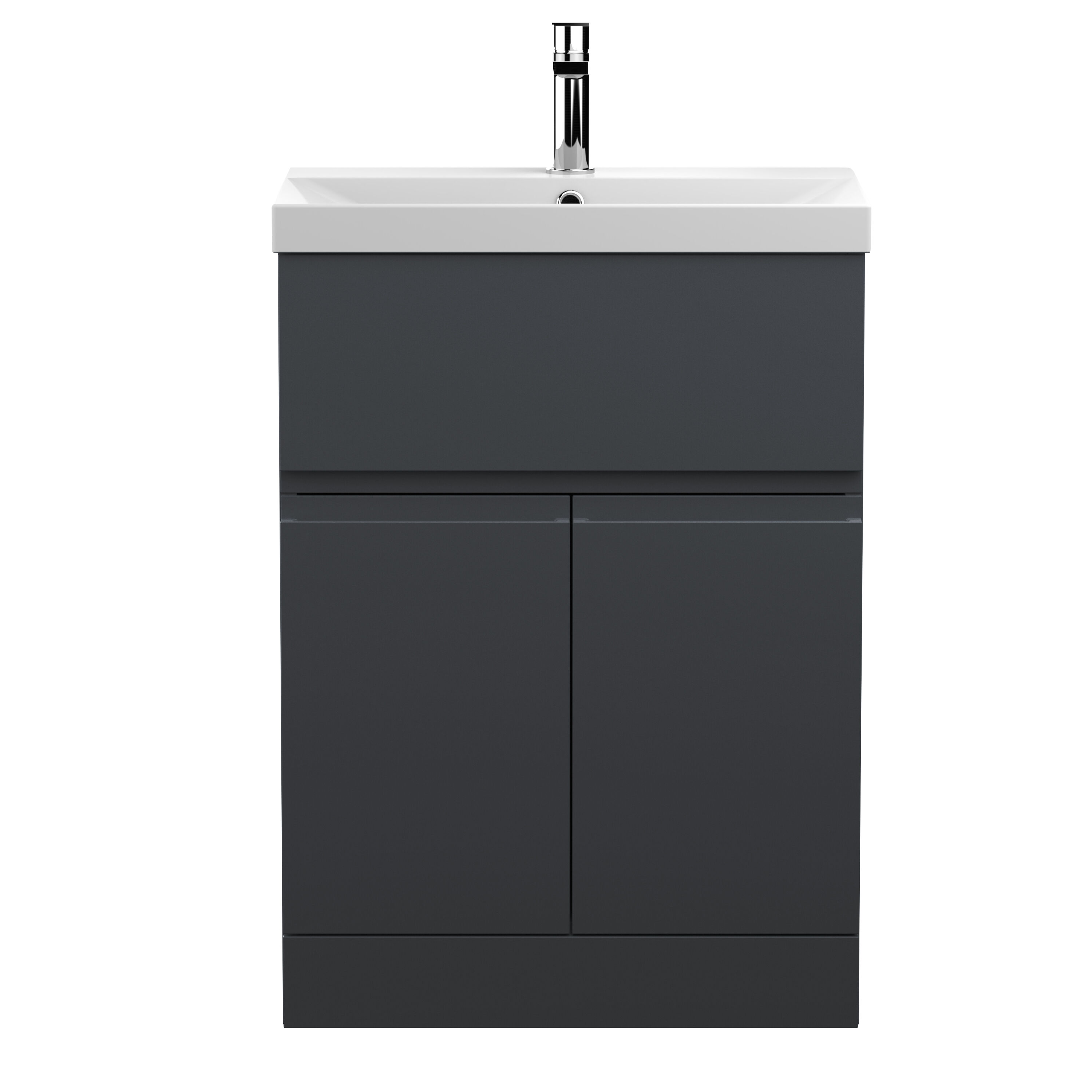 Hudson Reed Urban Floor Standing 2 Door 1 Drawer Vanity & Thin-Edge Ceramic Basin, 600mm - Soft Black