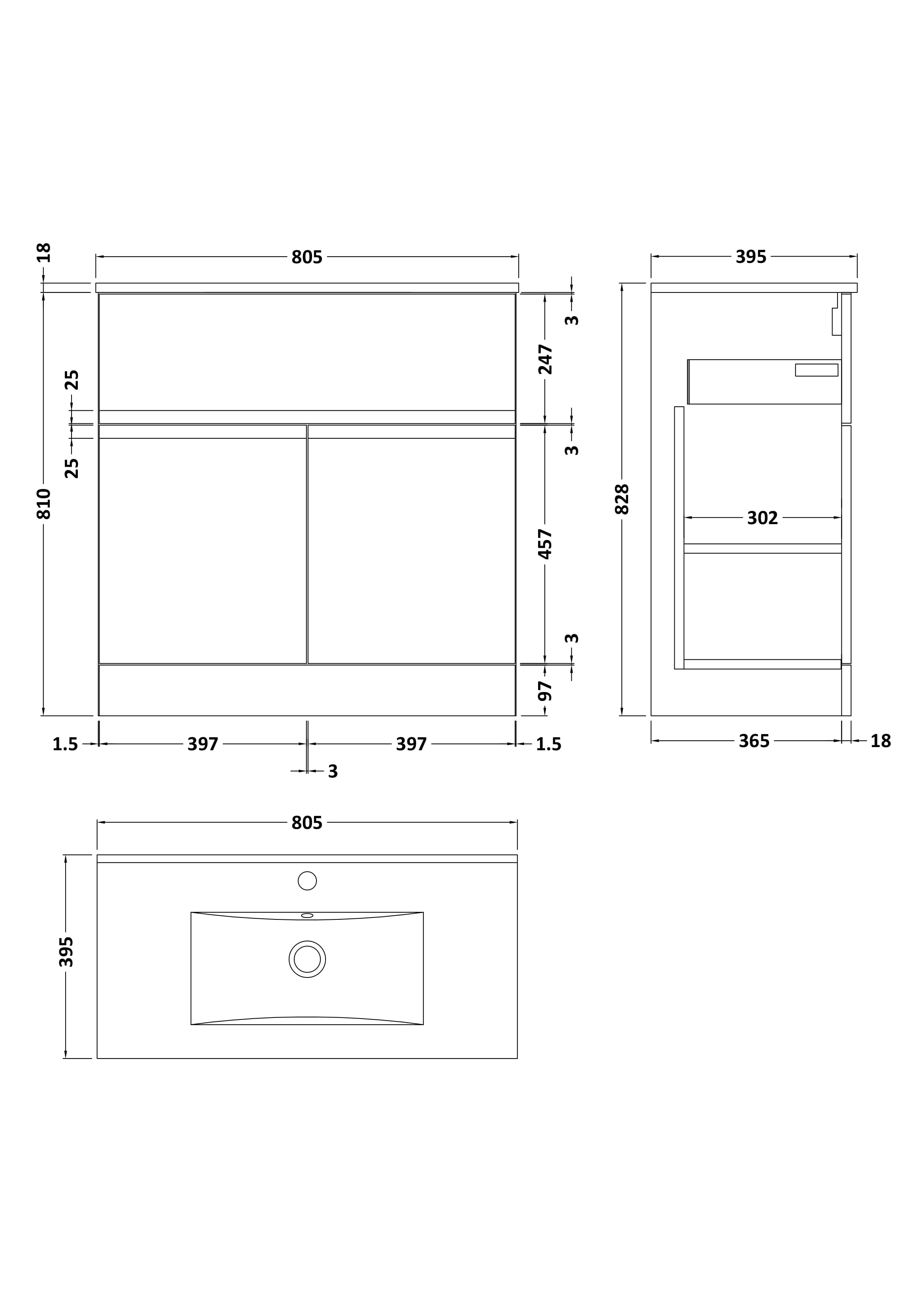 Hudson Reed Urban 800mm Floor Standing 2 Door 1 Drawer Vanity Unit With Basin & Soft Close
