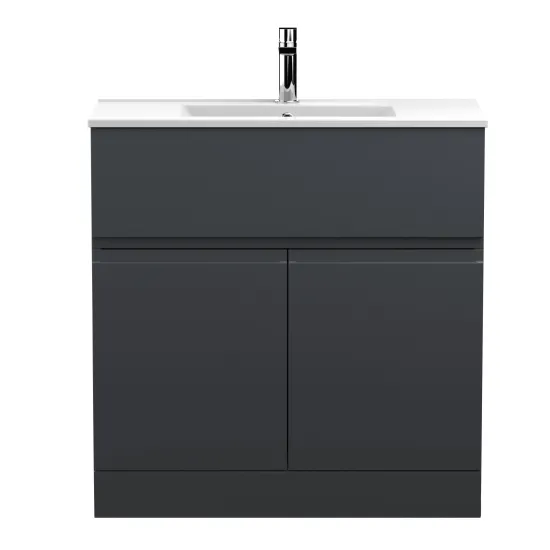 Hudson Reed Urban Floor Standing 2 Door Vanity & Minimalist Ceramic Basin, 800mm - Soft Black