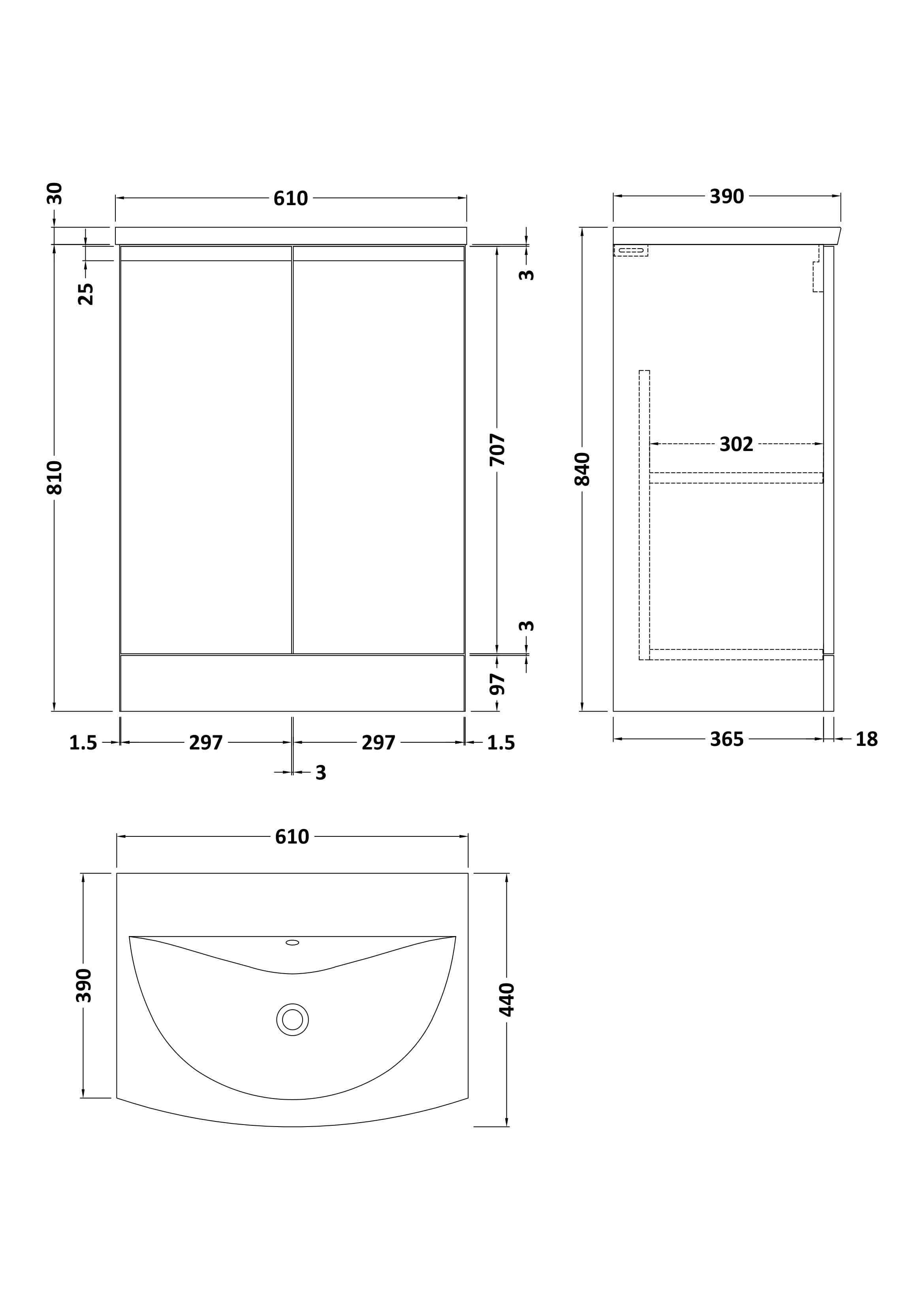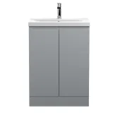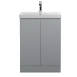 Hudson Reed Urban Floor Standing 2 Door Vanity Unit with Curved Basin 600mm - Satin Grey