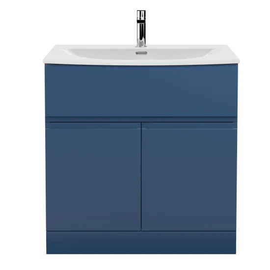 Hudson Reed Urban Floor Standing 2 Door Vanity Unit with Curved Basin 800mm - Satin Blue