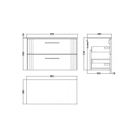 Nuie Athena 800mm Wall Hung 2 Drawer Soft Close Vanity Unit With Worktop