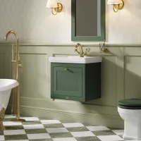 Nuie 500mm Satin Green Part Fluted Wall Hung 2-Drawer Vanity Unit with Thin-Edge Basin & Chrome Handles