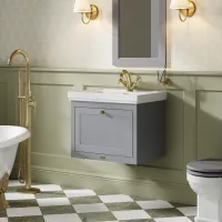 Bayswater Hartleigh 600mm Plummett Grey Wall Hung Vanity Unit With 1 Tap Hole Basin