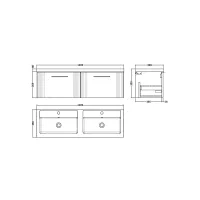 Nuie Deco 1200mm Wall Hung 2-Drawer Vanity & Double Basin With Handles
