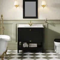 Bayswater Hartleigh 800mm Matt Black 1 Drawer Vanity Unit With 1 Tap Hole Marble Top Basin