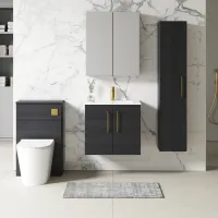 Nuie 600mm Charcoal Black Wall Hung 2-Door Vanity Unit With Basin