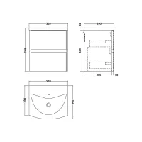 Nuie Havana 500mm Midnight Blue Wall Hung 2-Drawer Unit & Basin Handleless Soft Close Rigid