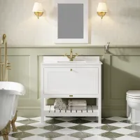 Bayswater Hartleigh 800mm Pointing White 1 Drawer Floor Standing Vanity Unit With 1 Tap Hole Marble Top Basin