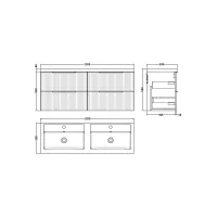 Hudson Reed Fluted 1205mm Satin Grey Wall Hung 4-Drawer Vanity Unit with Double Basin, Pre-Assembled