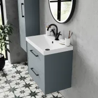Hudson Reed Juno 600mm Graphite Grey Wall Hung 2-Drawer Vanity Unit with Basin