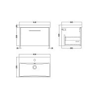 Kivo 600mm Single Drawer Wall Hung Unit with a Contemporary Basin - 3 Tap Holes
