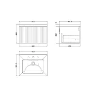 Flume 600mm Single Drawer Wall Hung Unit with Contemporary Fireclay Basin - 3 Tap Holes