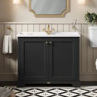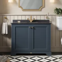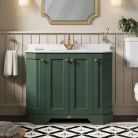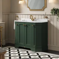 Hudson Reed Old London Hunter Green Floor Standing 2 Door Vanity Unit With Grey Marble Top Basin