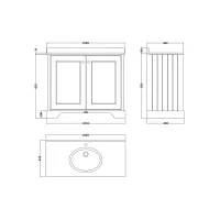 Bayswater 1000mm 3-Door Cabinet with 3 Tap Hole White Marble Top Basin
